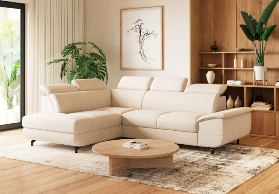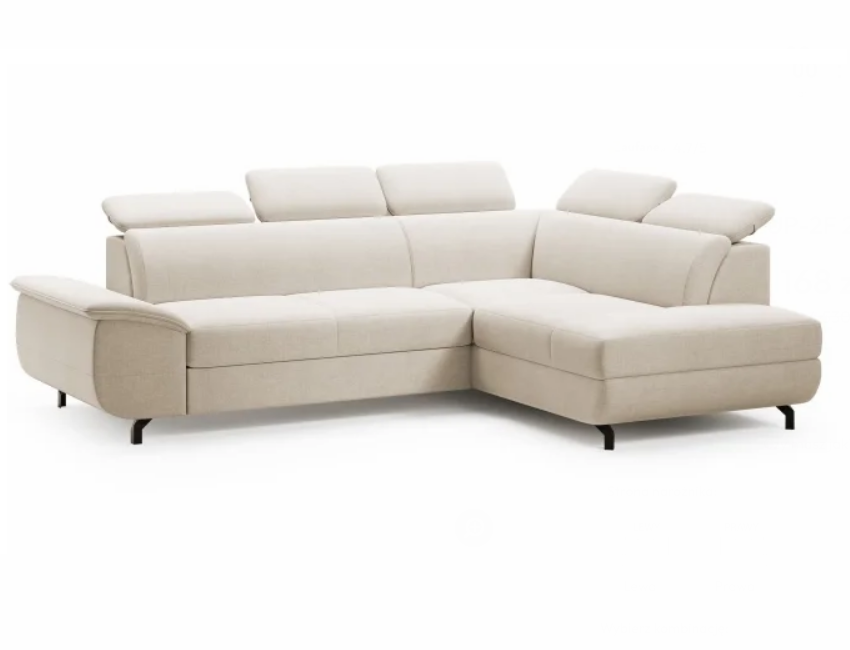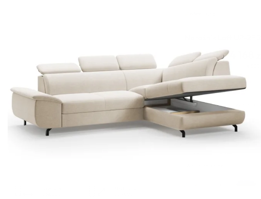 Narożnik Loft oferowany jest w wersji prawo- lub lewostronnej, co pozwala dopasować go do rozkładu pomieszczenia niezależnie od jego układu. Wbudowany pojemnik na pościel ułatwia przechowywanie dodatkowego kompletu tekstyliów, co może być szczególnie przydatne w mieszkaniach o ograniczonej przestrzeni do przechowywania. Funkcja spania oraz łatwy sposób rozkładania sprawiają, że mebel sprawdza się także jako codzienne miejsce do wypoczynku.