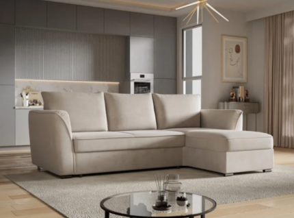 Kanapa Global Meblosoft to trzyosobowa kanapa do salonu z funkcją spania i pojemnikiem na pościel, stworzona z myślą o codziennym użytkowaniu. Szerokość